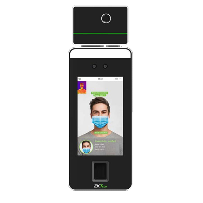 Биометрический терминал Zkteco SpeedFace-V5L (TI) распознает лица и ладони, определяет наличие маски, измеряет температуру тела человека с точностью ±0.3°C. Емкость RAM — 512 Мбайт, Flash — 8 Гбайт. Вместимость памяти: шаблоны 6000 лиц, 3000 ладоней и 6000 отпечатков пальца, 200 000 событий.