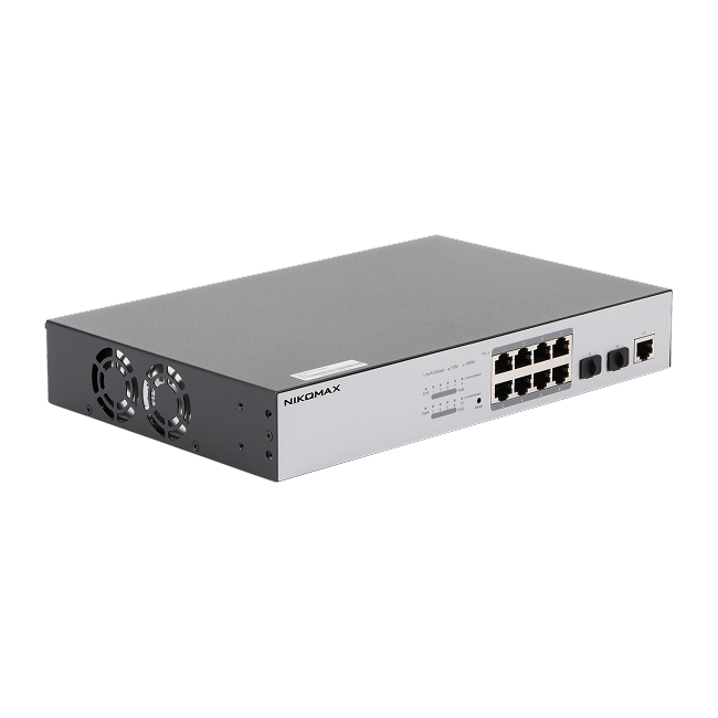 Управляемый PoE коммутатор NIKOMAX, L2, 8 10/1000/1000Мб/с PoE BASE-T, 2 порта 1Гб/с SFP, 1 консольный порт, бюджет PoE 130Вт